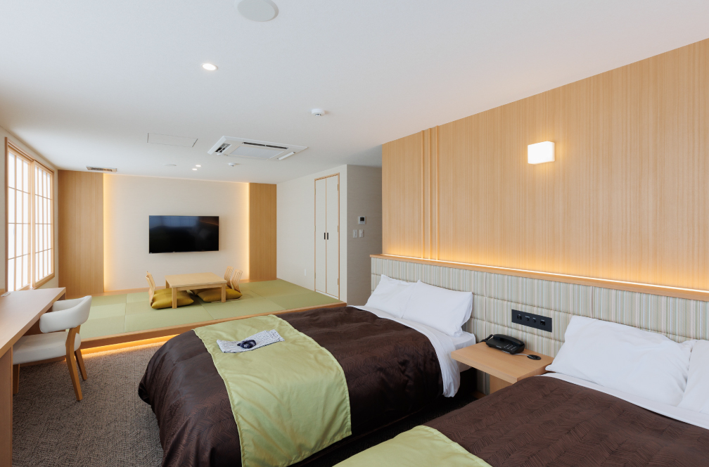 洋室スタンダードツイン、洋室DXツイン、特和洋室、和室とお客様のニーズに対応したお部屋を用意。ご旅行に、ビジネスに、何度でも来たくなる「もてなしの心」でお待ちしております。各種催事にご利用いただける宴会場もありますので、お気軽にご相談ください。